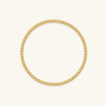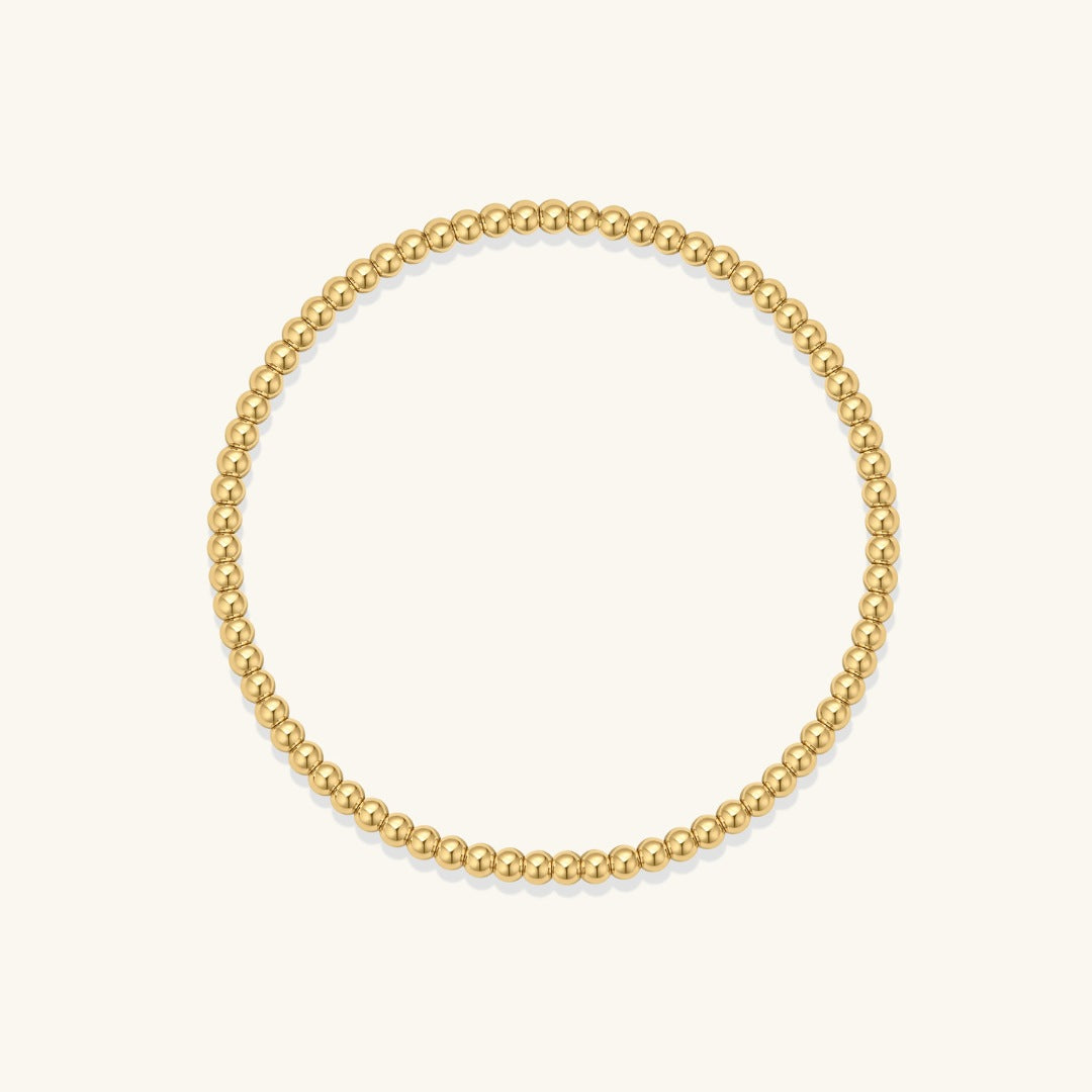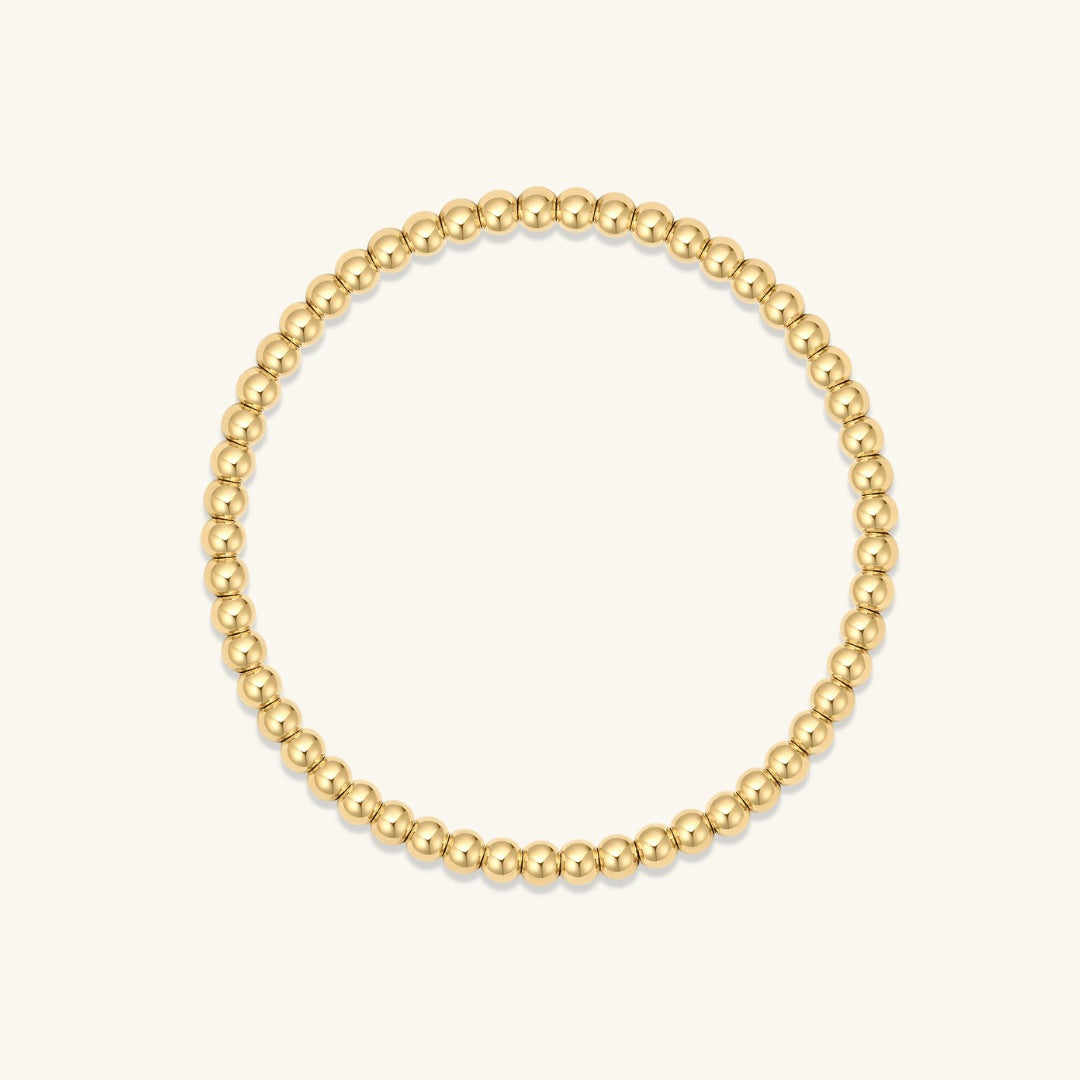 Trendy gold elastic beaded bracelets offered in 3mm and 4mm width. Wear alone or stack together for a bigger statement.