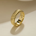 Make a statement with our 7mm Gold Filled Twist Band—a bold, versatile piece perfect for stacking or wearing alone. Crafted from 14k gold-filled metal, it offers the luxurious look of solid gold while remaining durable, water- and tarnish-resistant. Gentle on sensitive skin, this ring keeps its rich gold tone over time. For best care, avoid direct contact with perfumes and lotions.