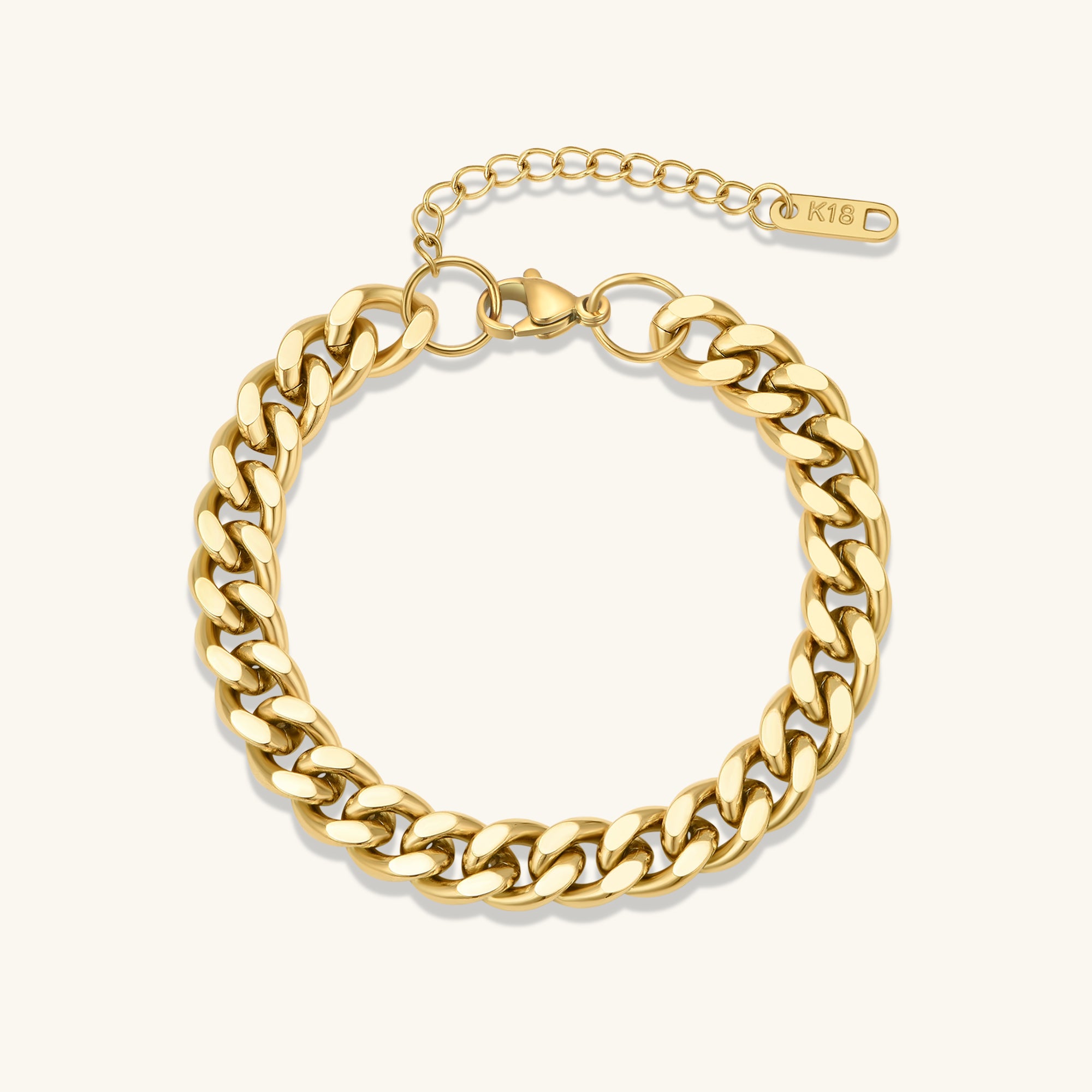 Our Curb chain bracelet is the perfect minimalist everyday gold bracelet. Meant for everyday wear and great for people with sensitive skin. Also an affordable alternative to solid 18k gold because this necklace is waterproof and tarnish resistant. Hypoallergenic Stainless Steel with thick layer of 18k gold PVD coating.