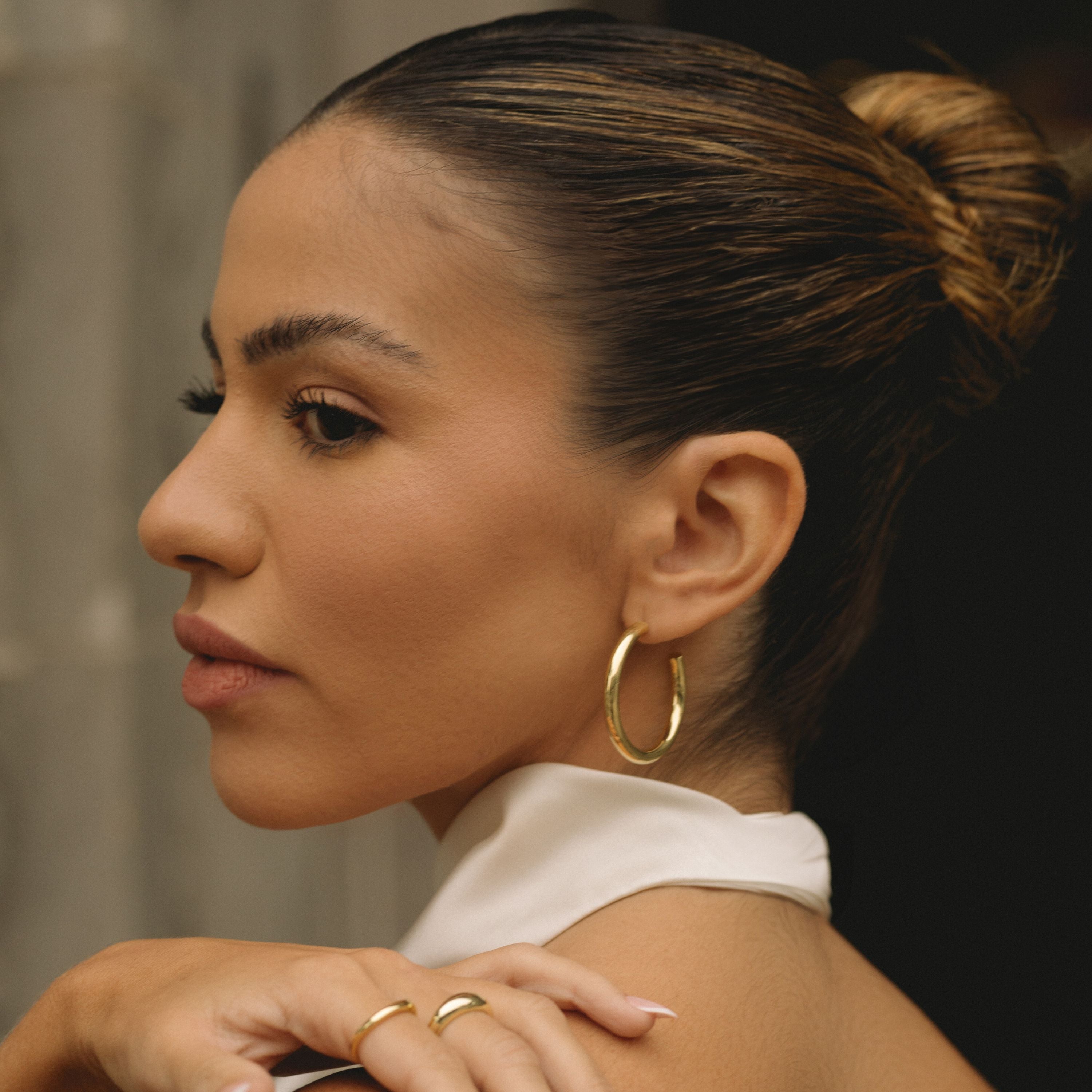These hoops are perfect for adding a touch of glamour to your everyday look. We call these the hoops for "making a statement". We mean it when we say, these earrings are made for everyday wear. Shower, exercise and wear to bed while looking stylish.