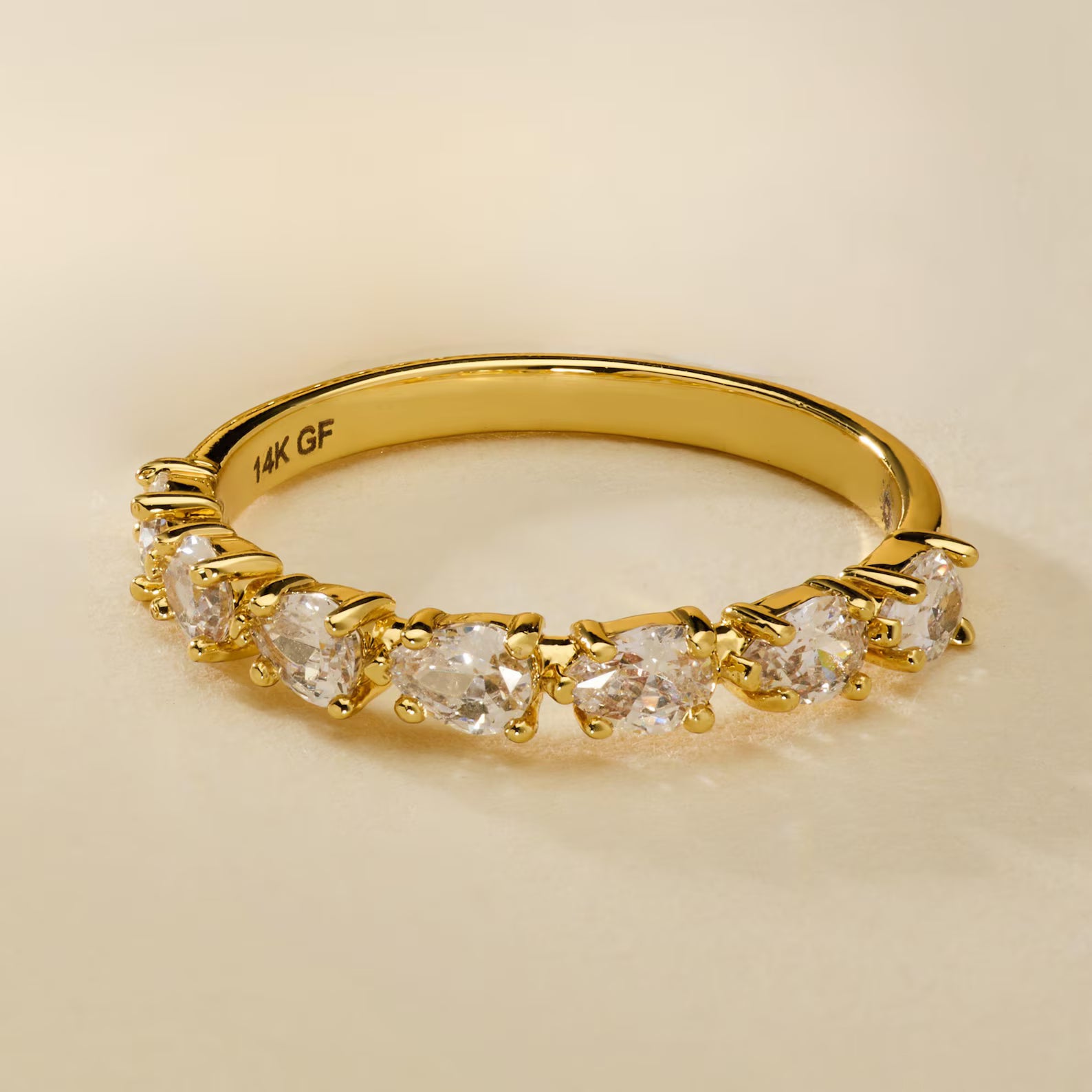 A romantic take on a timeless favorite. The Pear-Shaped Eternity Band features a continuous row of sparkling pear-cut stones, each delicately set to highlight their unique shape and brilliance. Perfect as a wedding band, anniversary ring, or stackable statement, this piece catches the light—and eyes—from every angle.