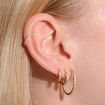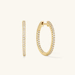Gorgeous diamond hoop earrings with cubic zirconia gemstones throughout. Dress them up or dress them down. These hoop earrings are extremely versatile to wear everyday and for any occasion.
