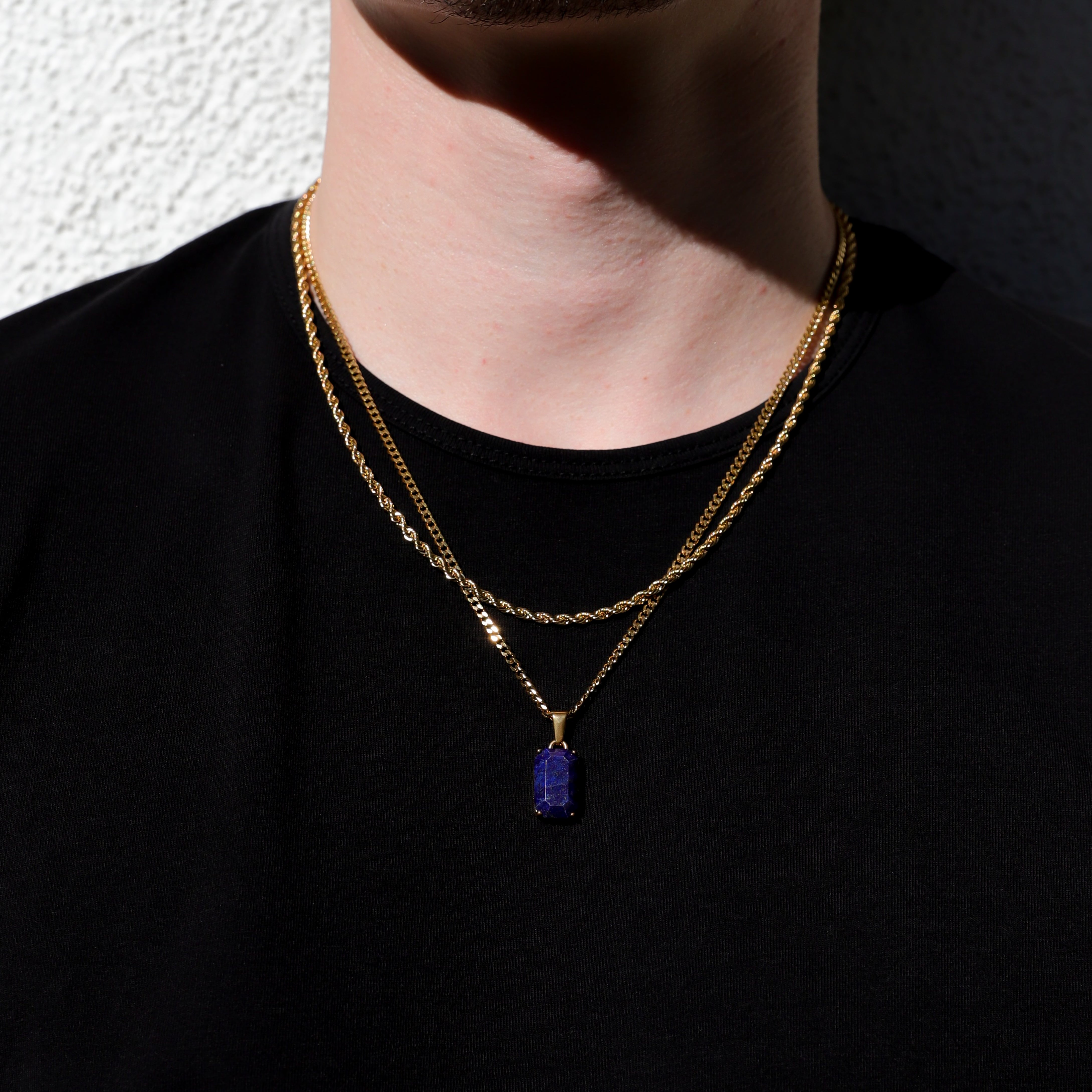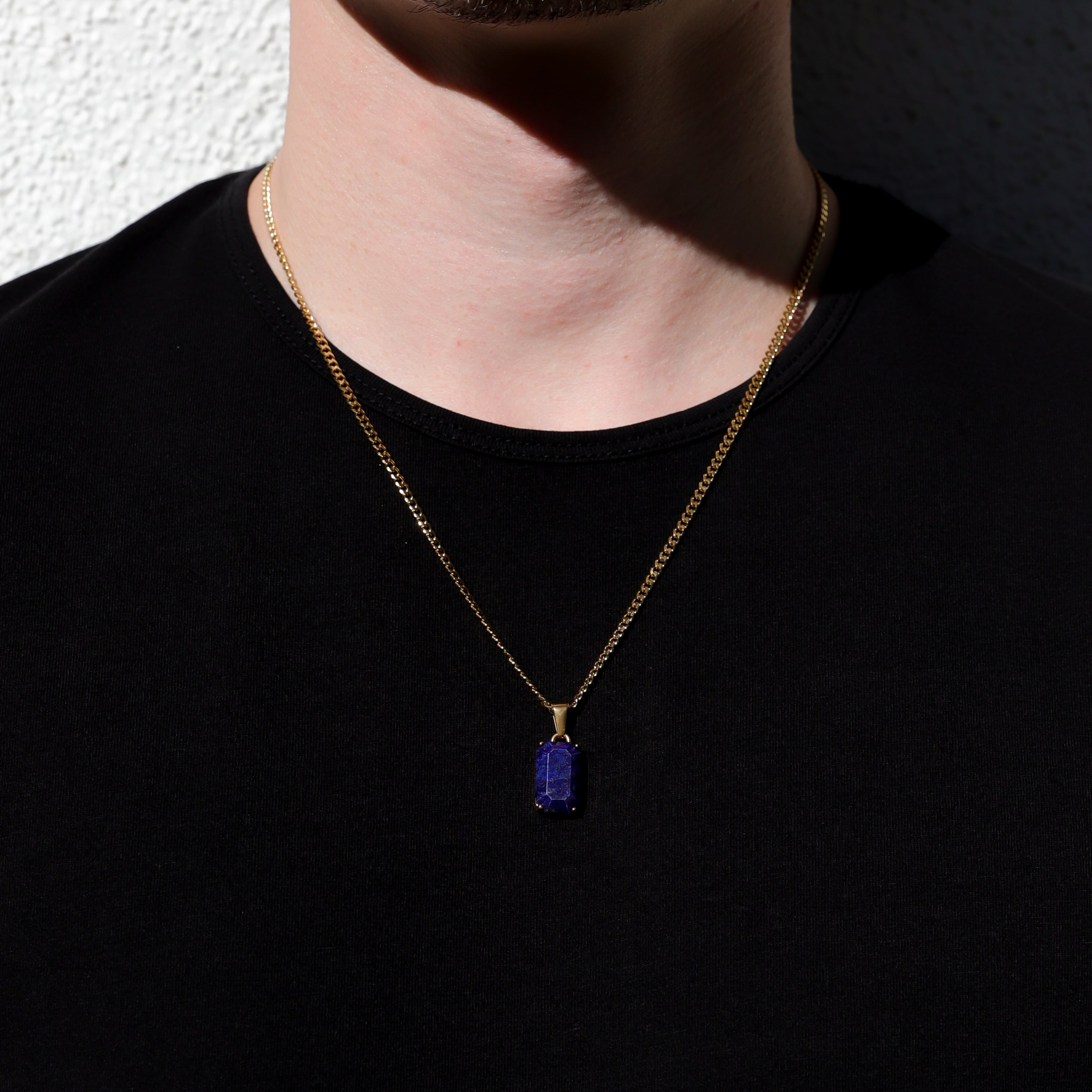 Elevate your style with this stunning rectangular Lapis stone necklace, set against a luxurious gold Cuban link chain. The deep, polished Lapis exudes timeless elegance, while the bold, intricately linked chain adds a touch of modern sophistication. Perfect for making a statement, this necklace seamlessly blends classic allure with contemporary flair.