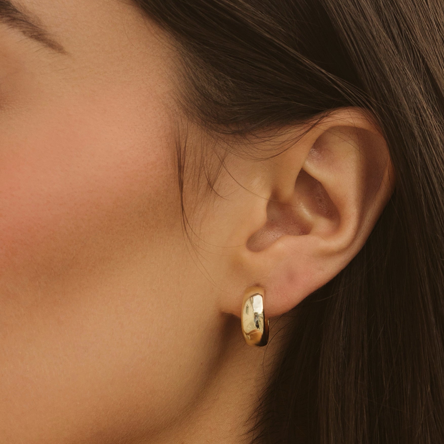 Create an effortless look with our small dome hoop earrings. The perfect everyday lightweight hoop to add style to your outfits. These small chunky hoops come in high quality 18k gold plated brass.