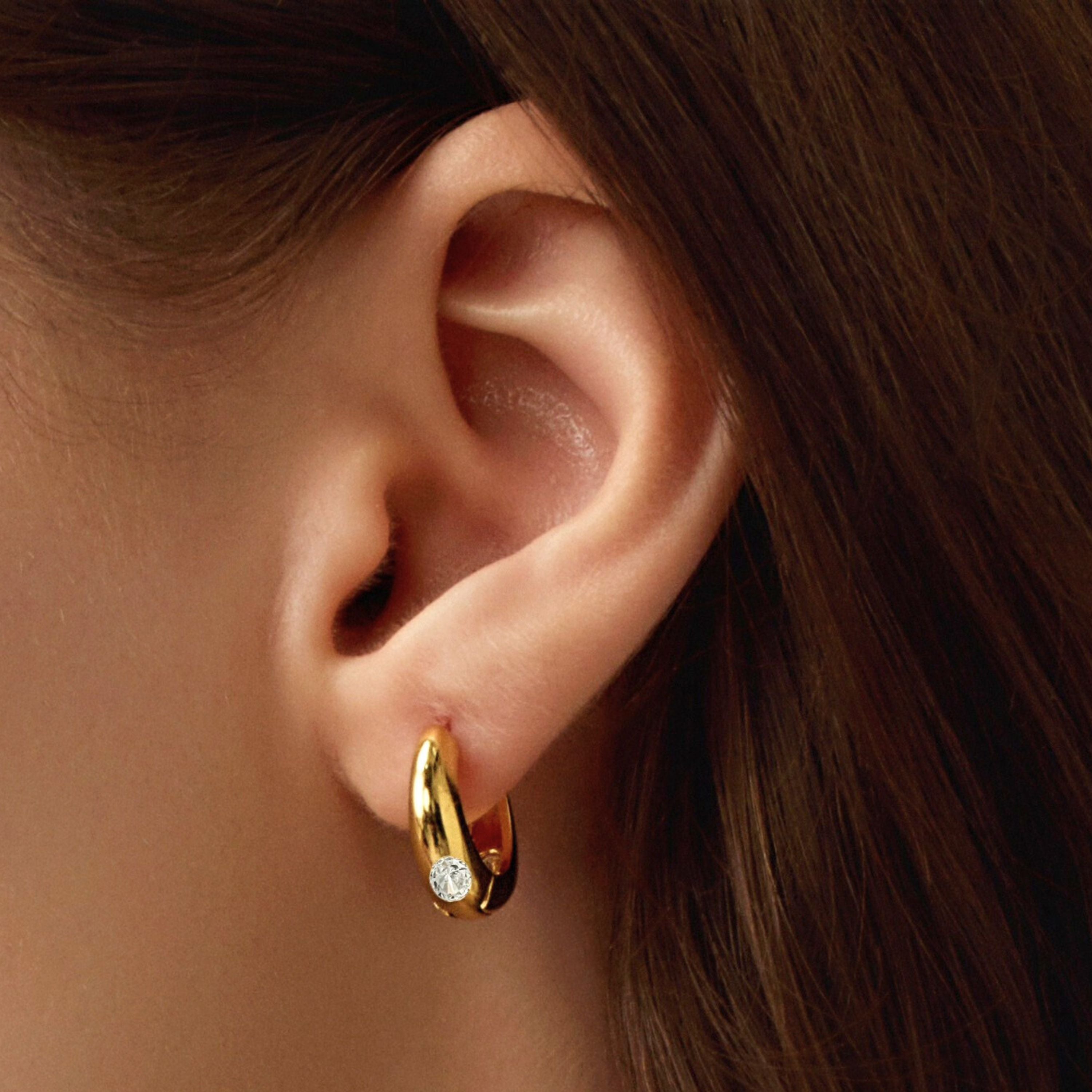 Our Gold Filled Bezel Dome Hoops bring a touch of vintage-inspired glamour with a smooth, domed shape and subtle bezel detailing. Crafted from high-quality gold-filled metal, these hoops are lightweight, tarnish-resistant, and perfect for everyday elegance.