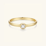 Our Gold Filled Bezel ring adds sparkle to your ring stack. Part of our best selling Bezel collection. A new look made for ring stacking. Our 14k gold-filled jewelry is bonded with 14k gold and is water and tarnish resistant. 14k gold-filled jewelry is a great alternative to solid gold, and can be worn by people with sensitive skin. The color will not tarnish but recommend to keep away from perfumes and lotions.