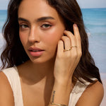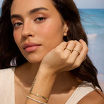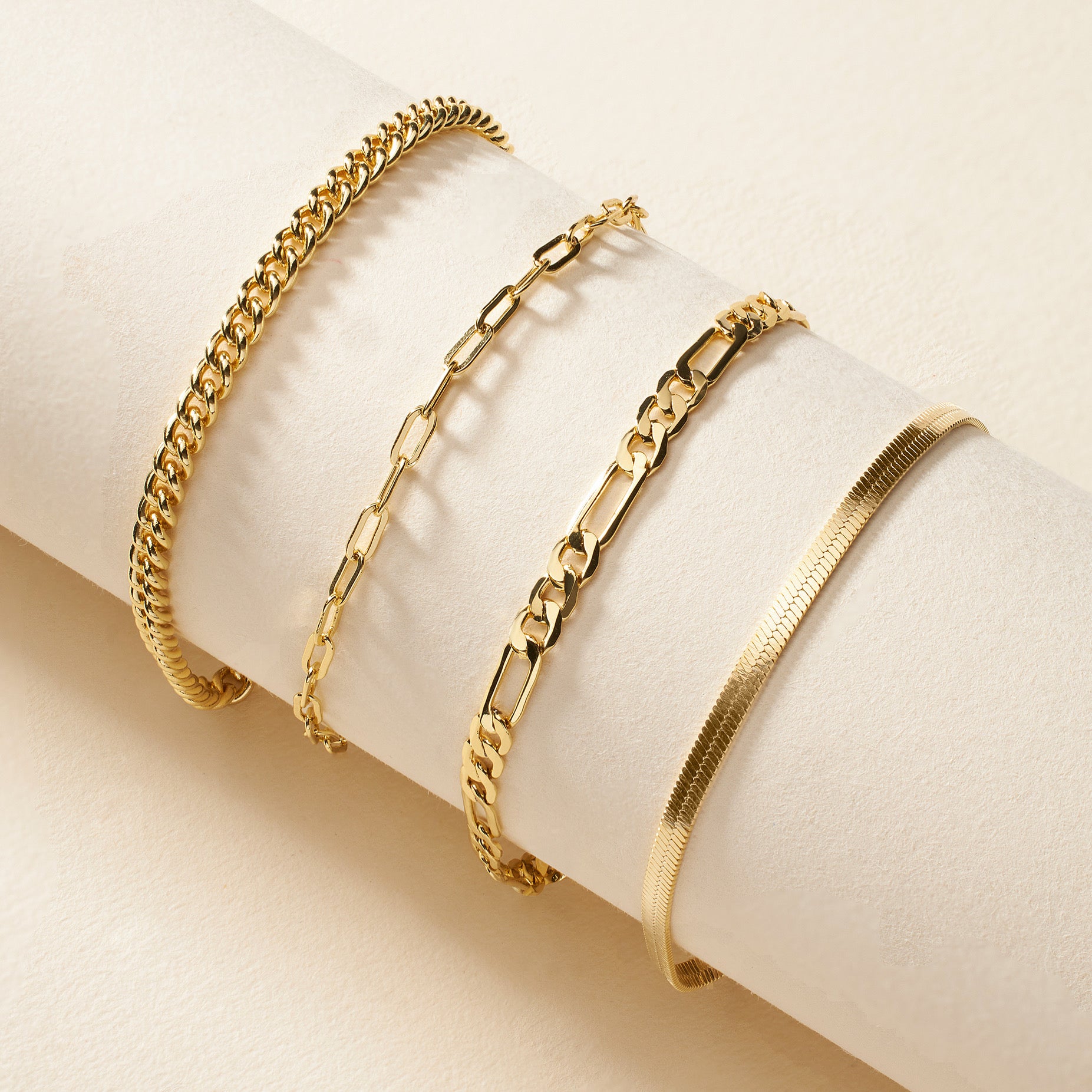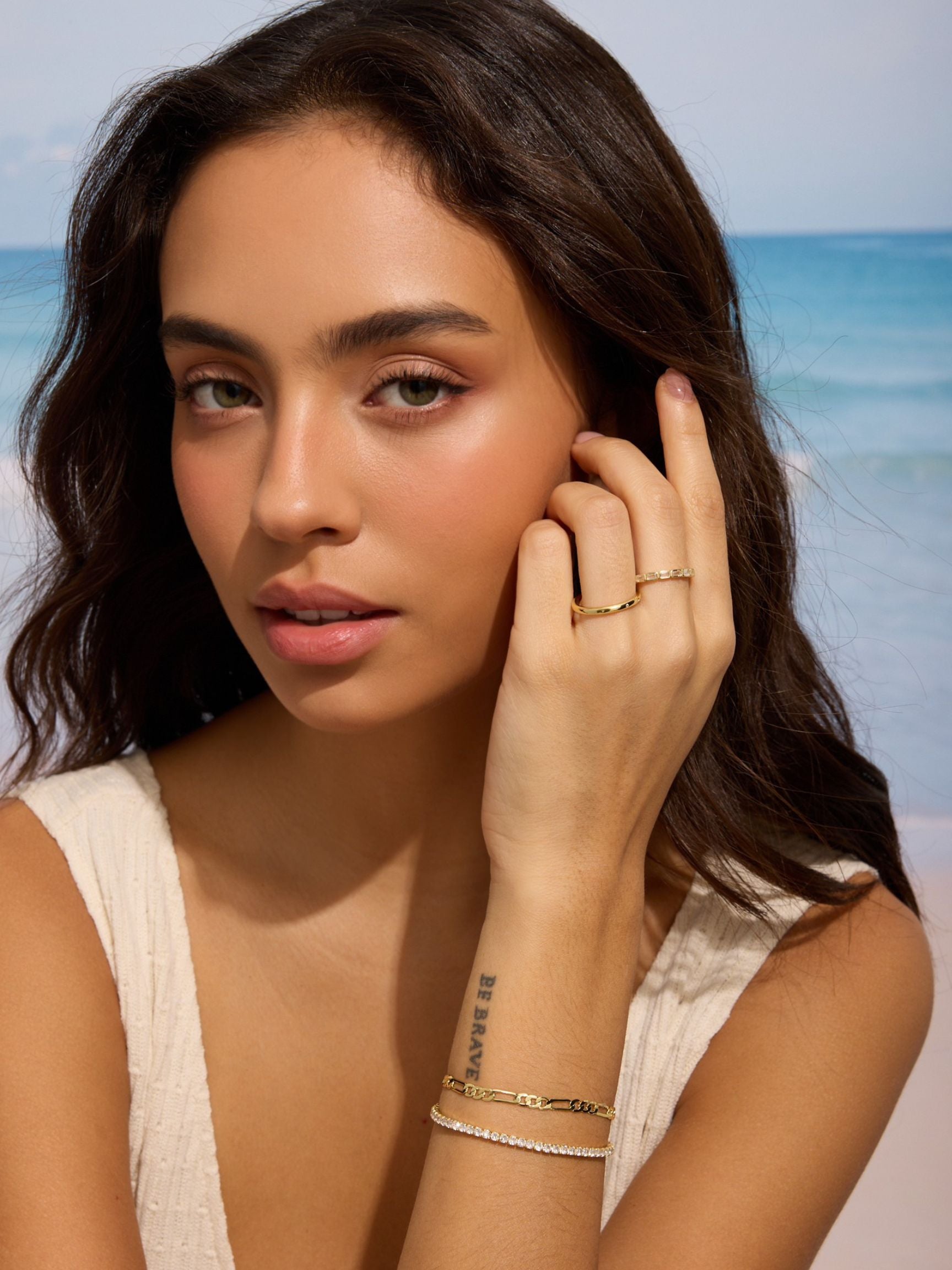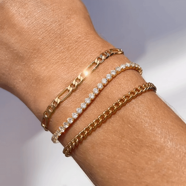 Our Figaro chain bracelet is a gold staple to wear alone or stack with our other gold filled bracelets. Our 14k gold-filled jewelry is bonded with 14k gold and is water and tarnish resistant. 14k gold-filled jewelry is a great alternative to solid gold, and can be worn by people with sensitive skin. The color will not tarnish but recommend to keep away from perfumes and lotions.