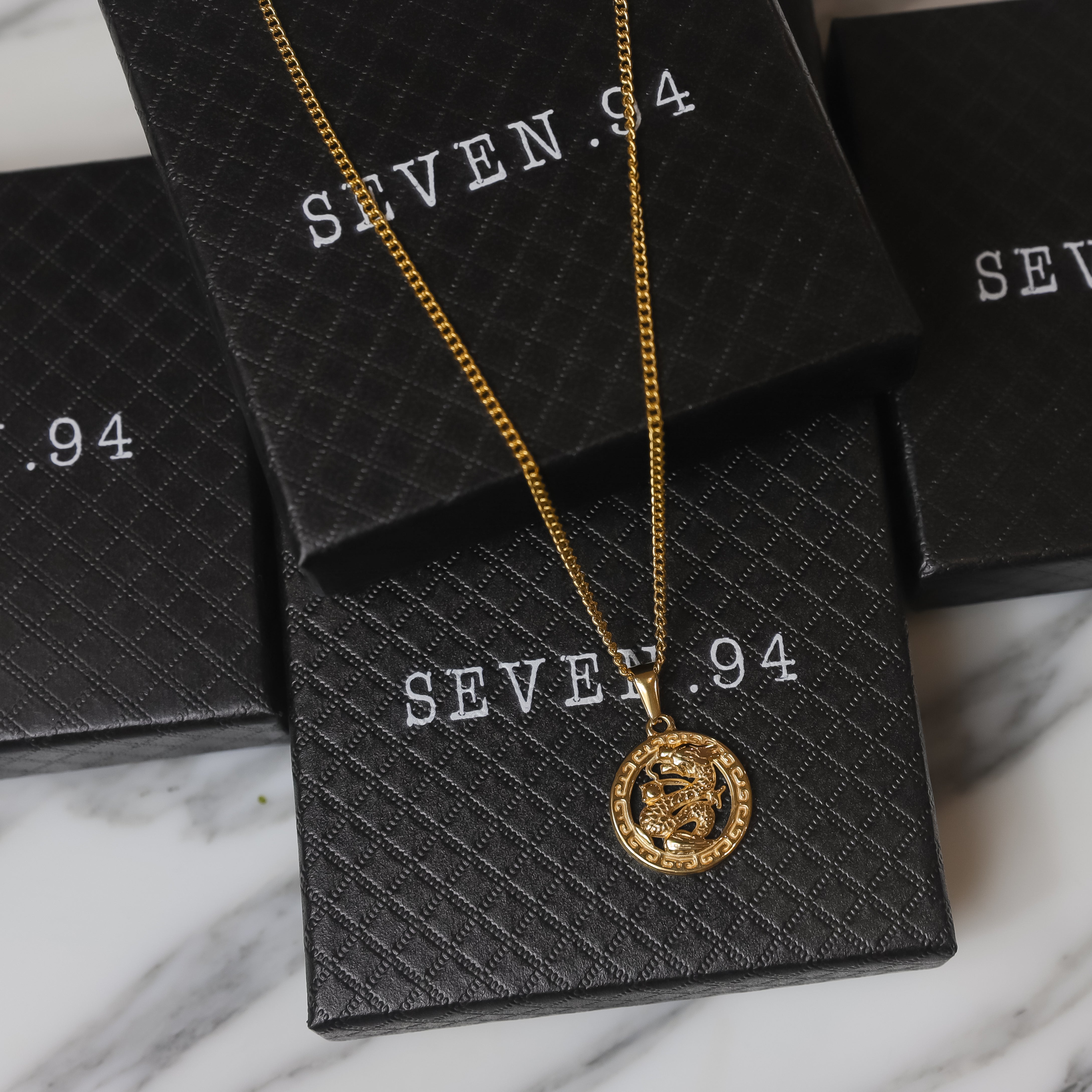 Elevate your style with this striking gold dragon pendant, a symbol of power and protection. Expertly crafted with intricate detailing, the dragon hangs from a bold curb chain that adds a modern edge to its timeless design. Perfect for making a statement, this piece blends mythic energy with everyday sophistication. Our Dragon Pendant necklace is made from Premium quality 316L stainless steel. This allows the pendant and chain to be water and sweat resistant. This chain can be worn on its own as a statement or be layered with other chains from our shop.
