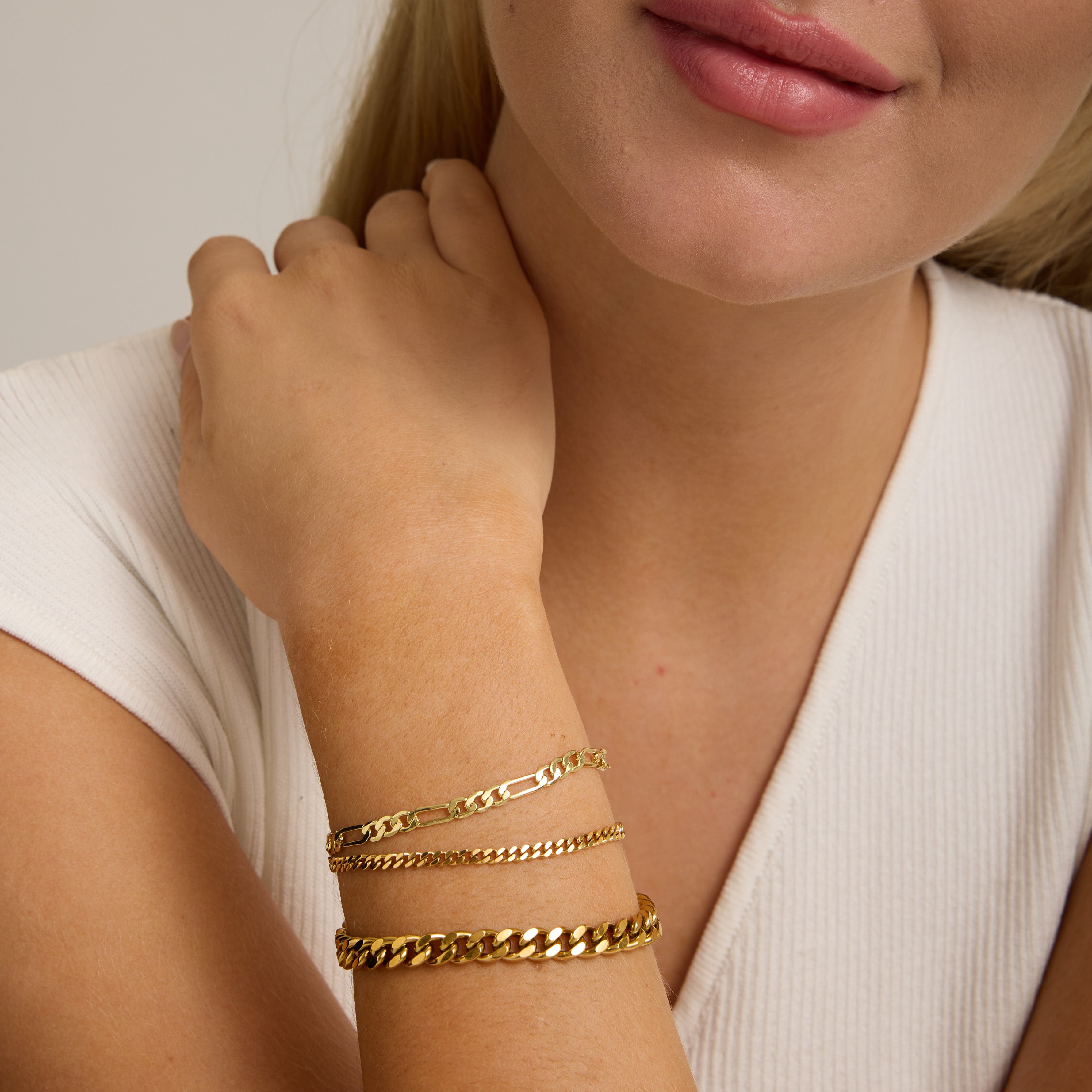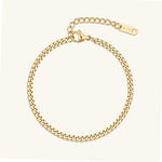 Our Curb chain bracelet is the perfect minimalist everyday gold bracelet. Meant for everyday wear and great for people with sensitive skin. Also an affordable alternative to solid 18k gold because this necklace is waterproof and tarnish resistant. Hypoallergenic Stainless Steel with thick layer of 18k gold PVD coating.