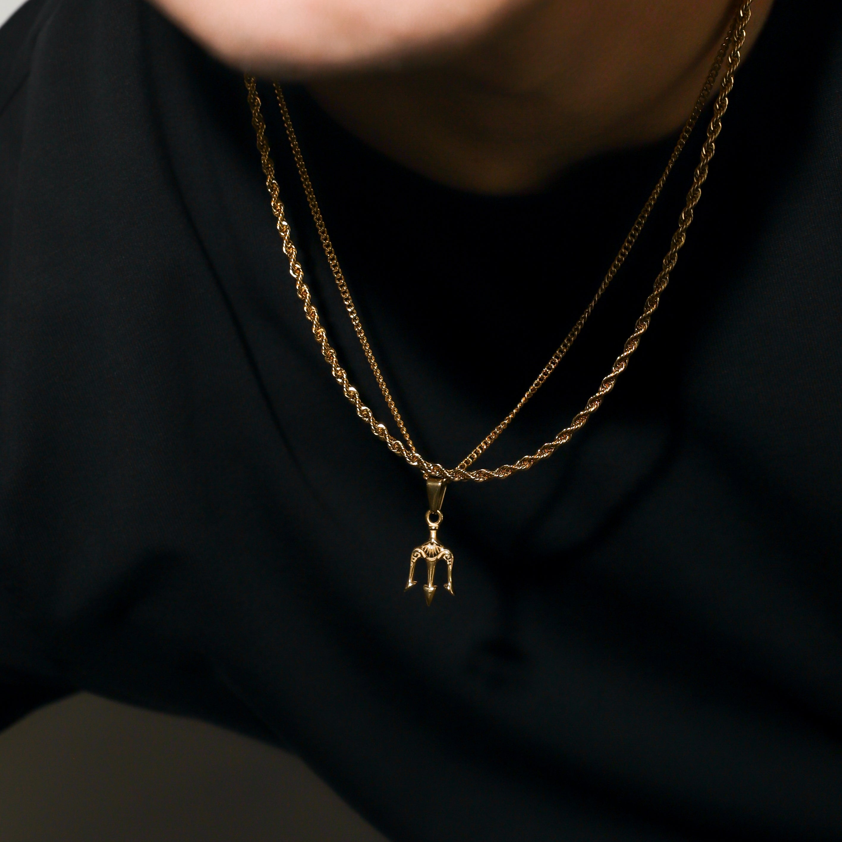 Our Trident Pendant and Rope Chain are made from Premium quality 316L stainless steel. This allows the pendant and chain to be water and sweat resistant. This chain can be worn on its own as a statement or be layered with other chains from our shop.