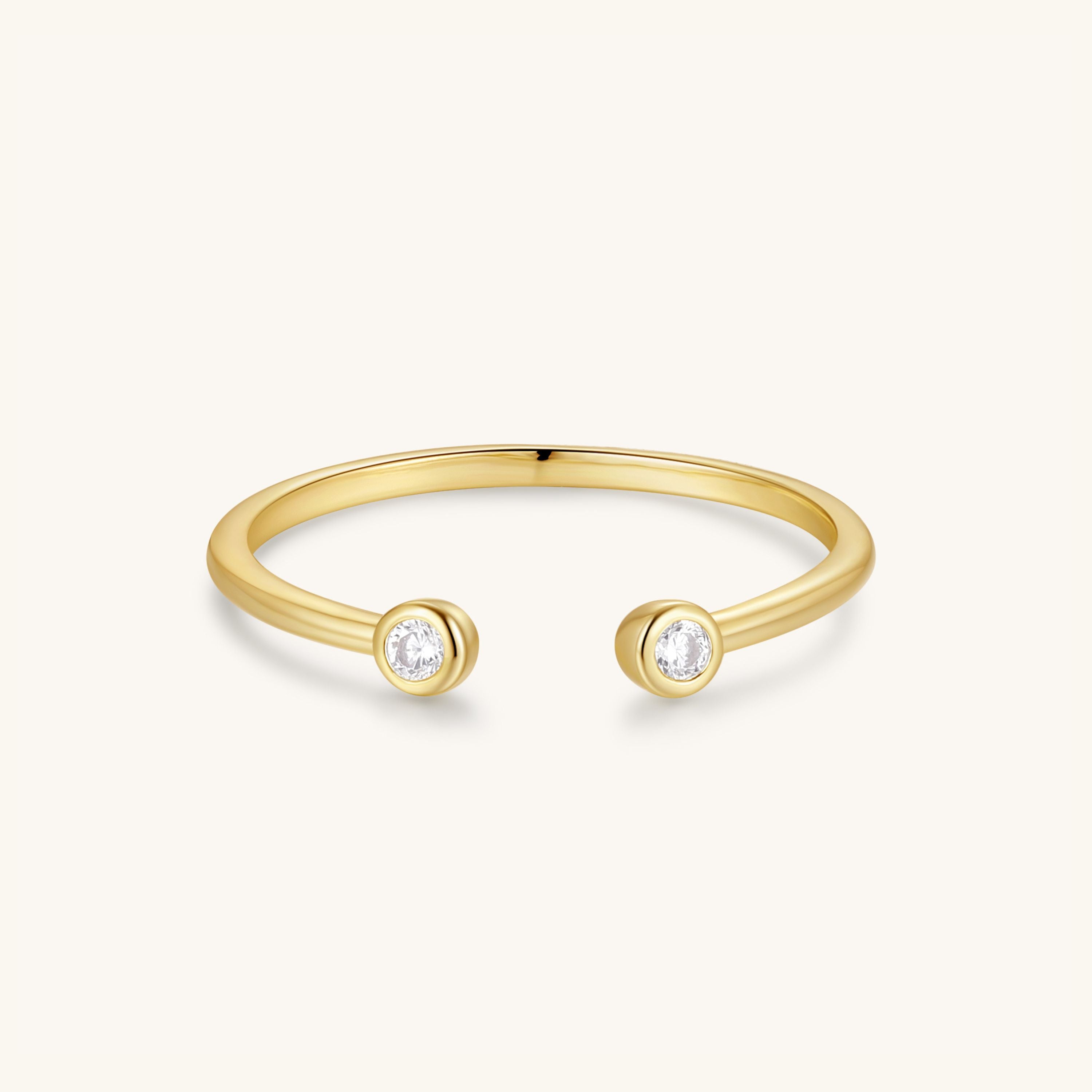 Modern minimalism meets timeless shine in our Open Bezel Wrap Ring. Designed with two bezel-set stones that appear to float along a sleek open band, this style wraps gracefully around the finger for a perfectly balanced look.