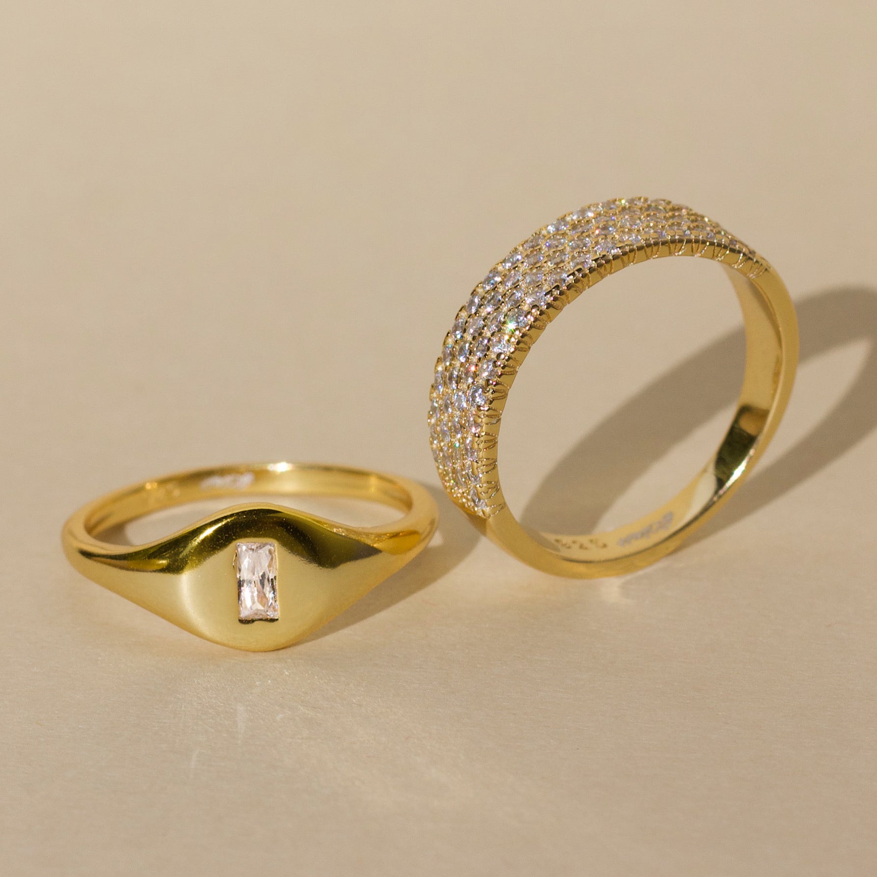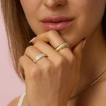 Make a sparkly statement with our pave cigar band. A classic yet bold ring made with an extremely light-weight design. Best worn with our other daintier rings to create a layering effect.