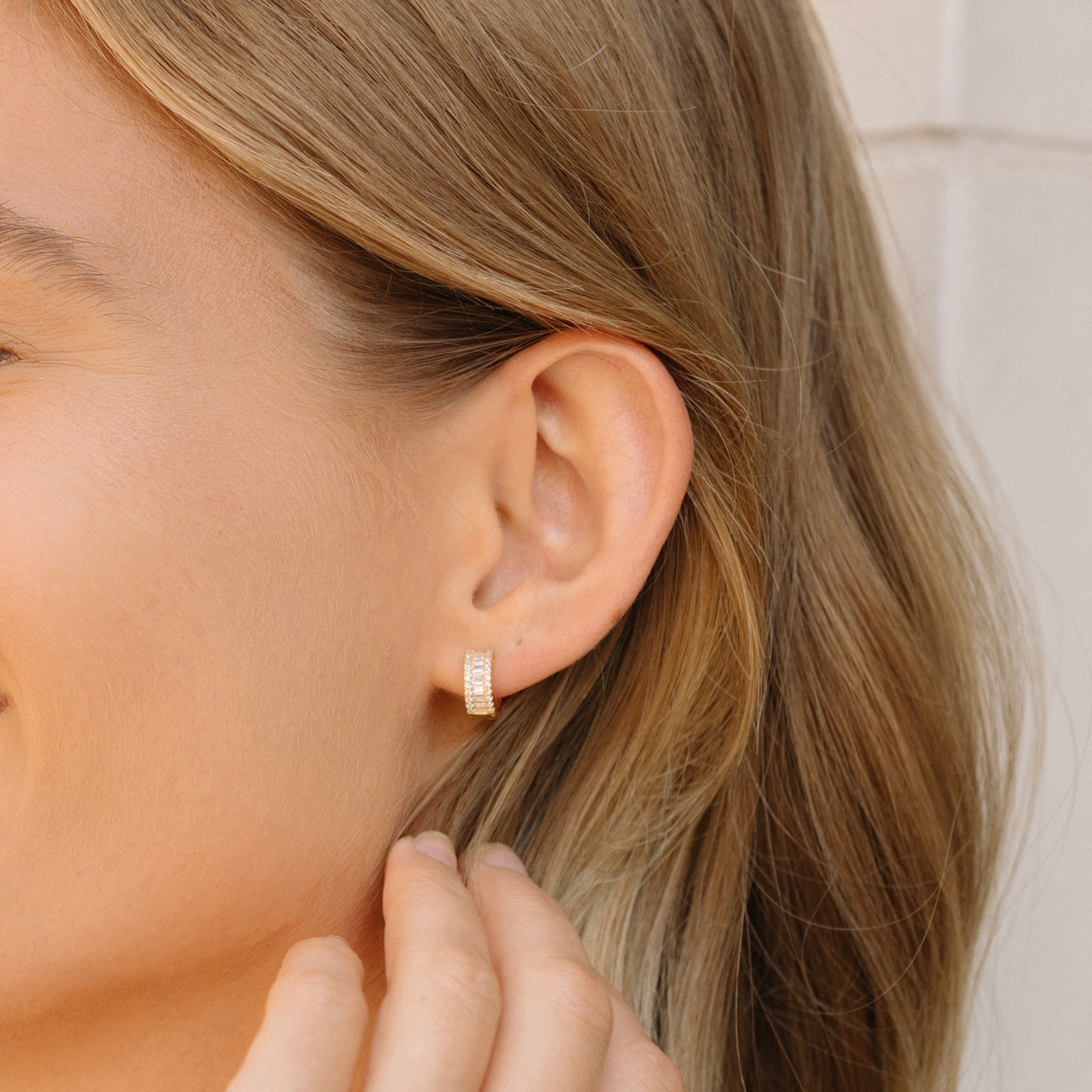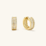 We've got the perfect jewelry for the person who loves to sparkle - Baguette Hoops!Featuring channel-set baguette cubic zirconia gemstones that are framed by two rows of prong-set round more cubic zirconia gemstones.
