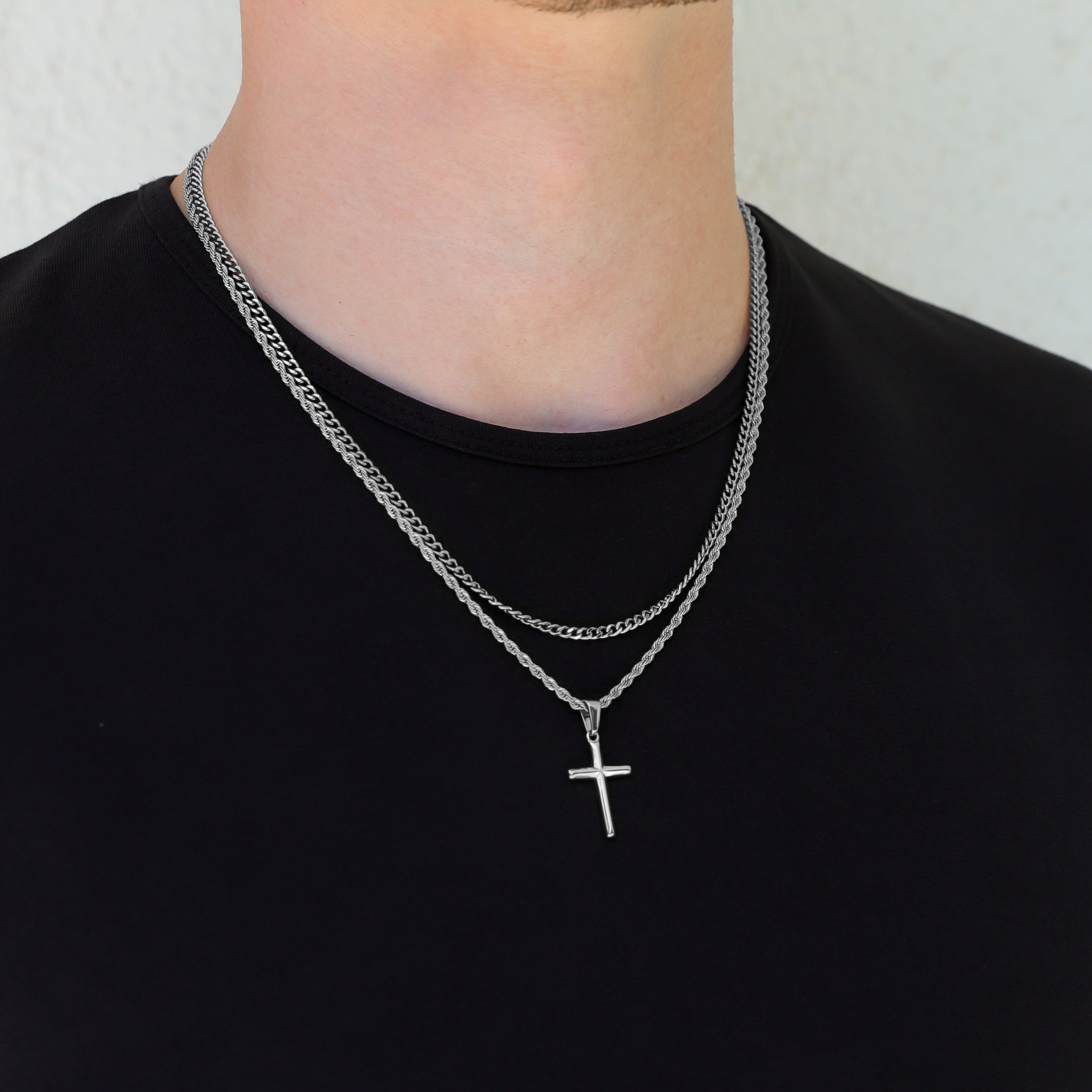 Our Cross necklace is made from Premium quality 316L stainless steel. This allows the pendant and chain to be water and sweat resistant. This chain can be worn on its own as a statement or be layered with other chains from our shop. Available in 18k Gold and Silver colors.