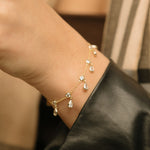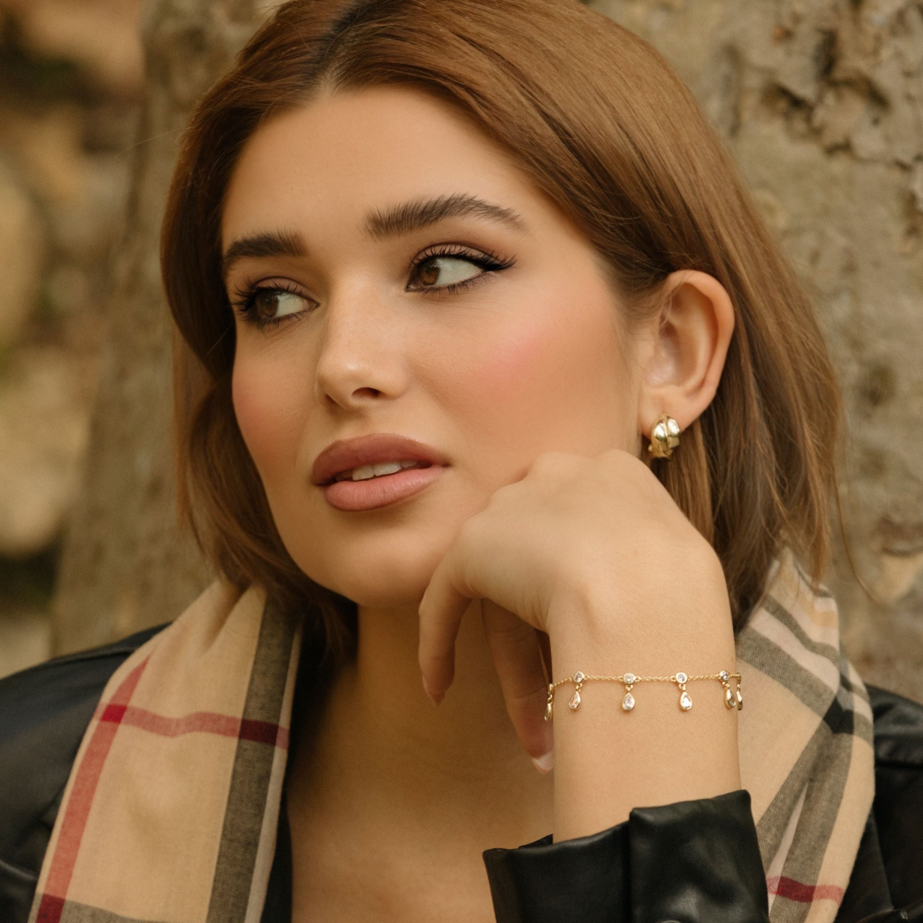 Add color and elegance to your stack with our Teardrop Bracelet with 6 Gemstones. Featuring six delicately set teardrop-shaped stones, this bracelet catches the light with every movement, creating a playful yet sophisticated sparkle.
