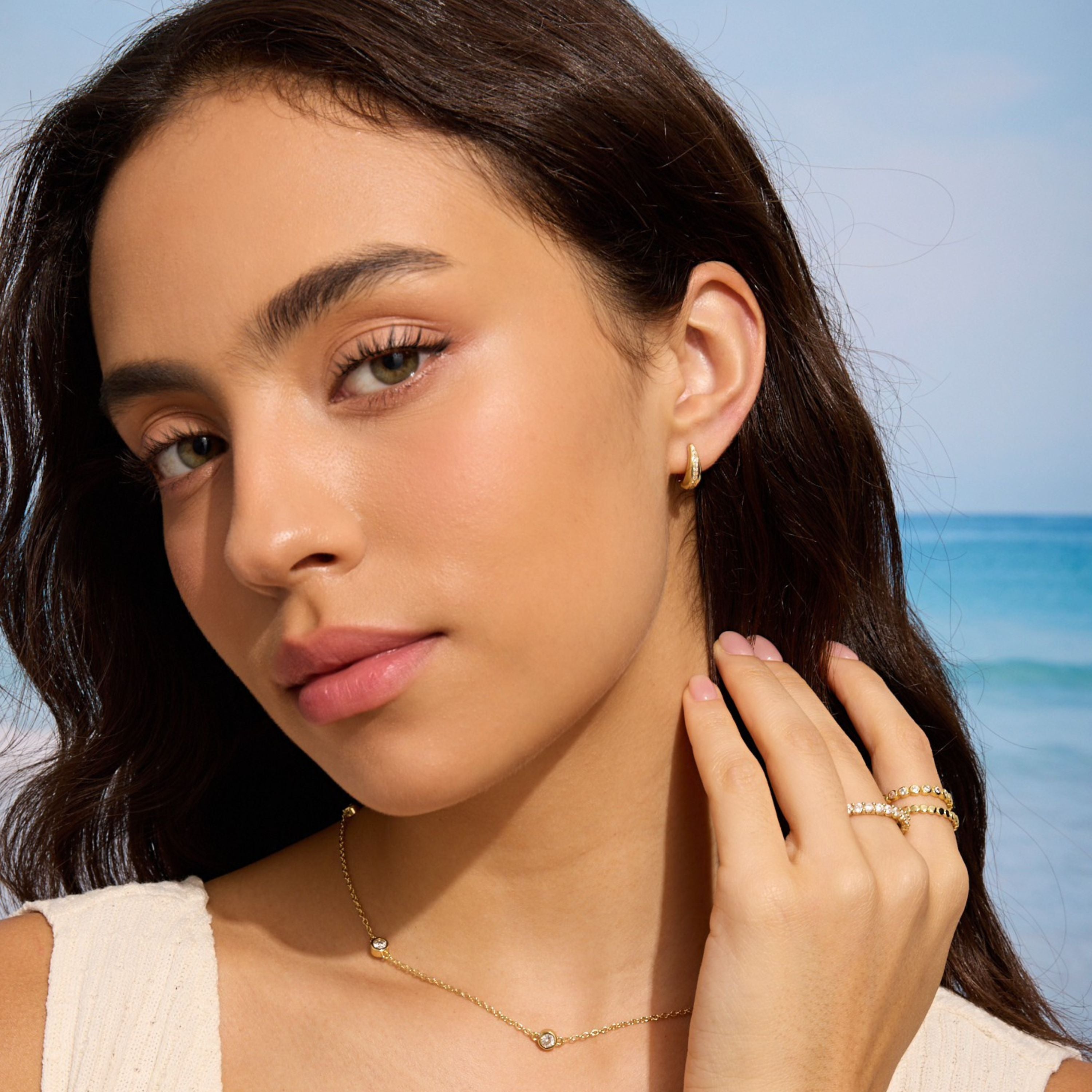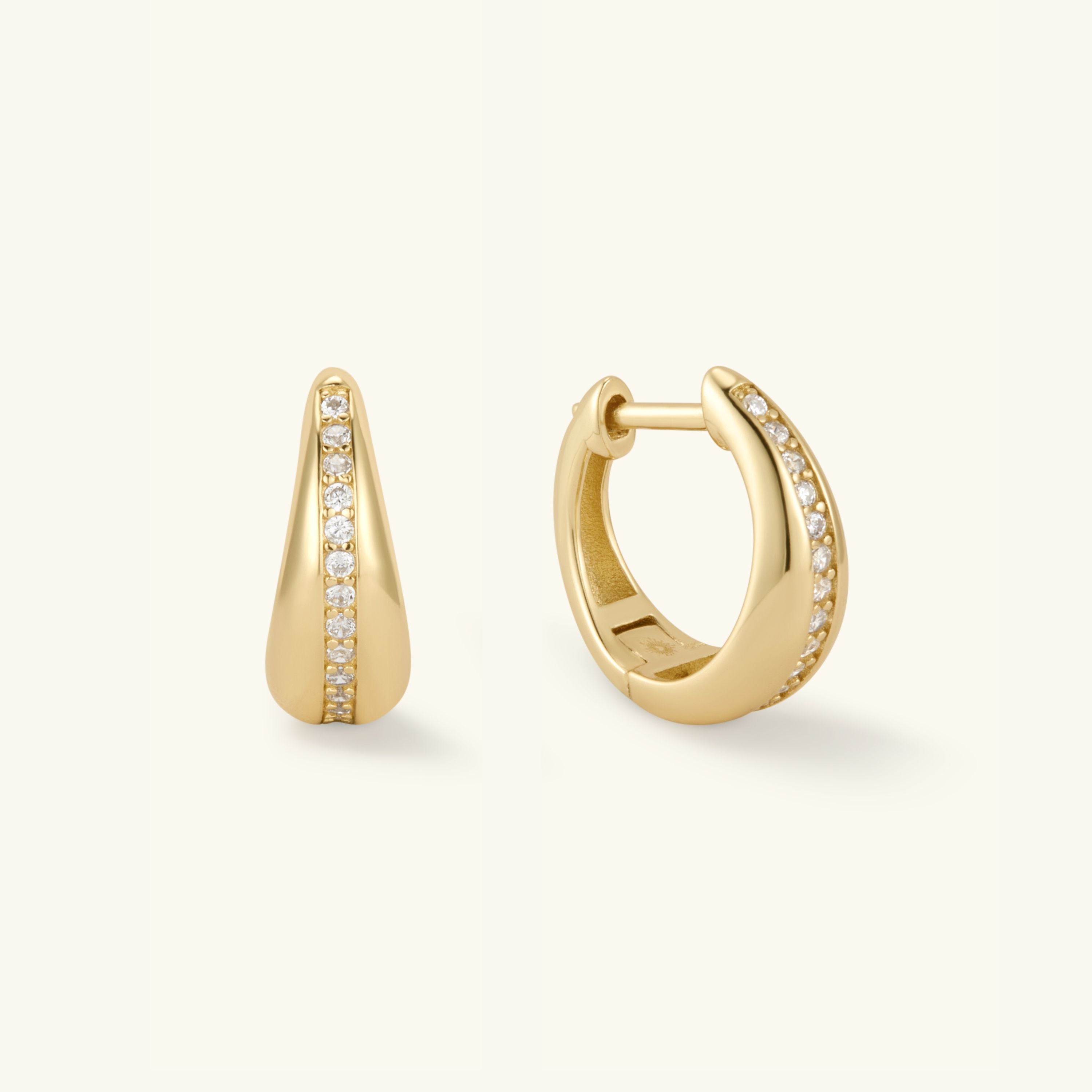 Create an effortless look with our small teardrop diamond huggie earrings. The perfect everyday lightweight hoop to add style to your outfits.